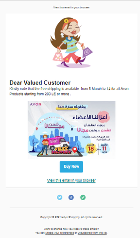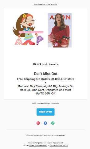 Here is an email marketing campaign that I created for Lady's Shopping Online Store in Egypt.