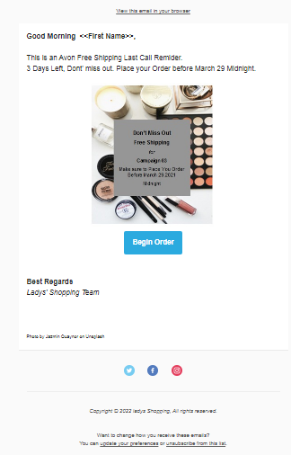 The emails are carefully designed to meet the need of the brand and campaign objective. They helped Lady’s Shopping target the right audience and entice them to benefit from the flash sale. I am excited to help them promote their products, and increase sales and revenue, and I am happy with the results.